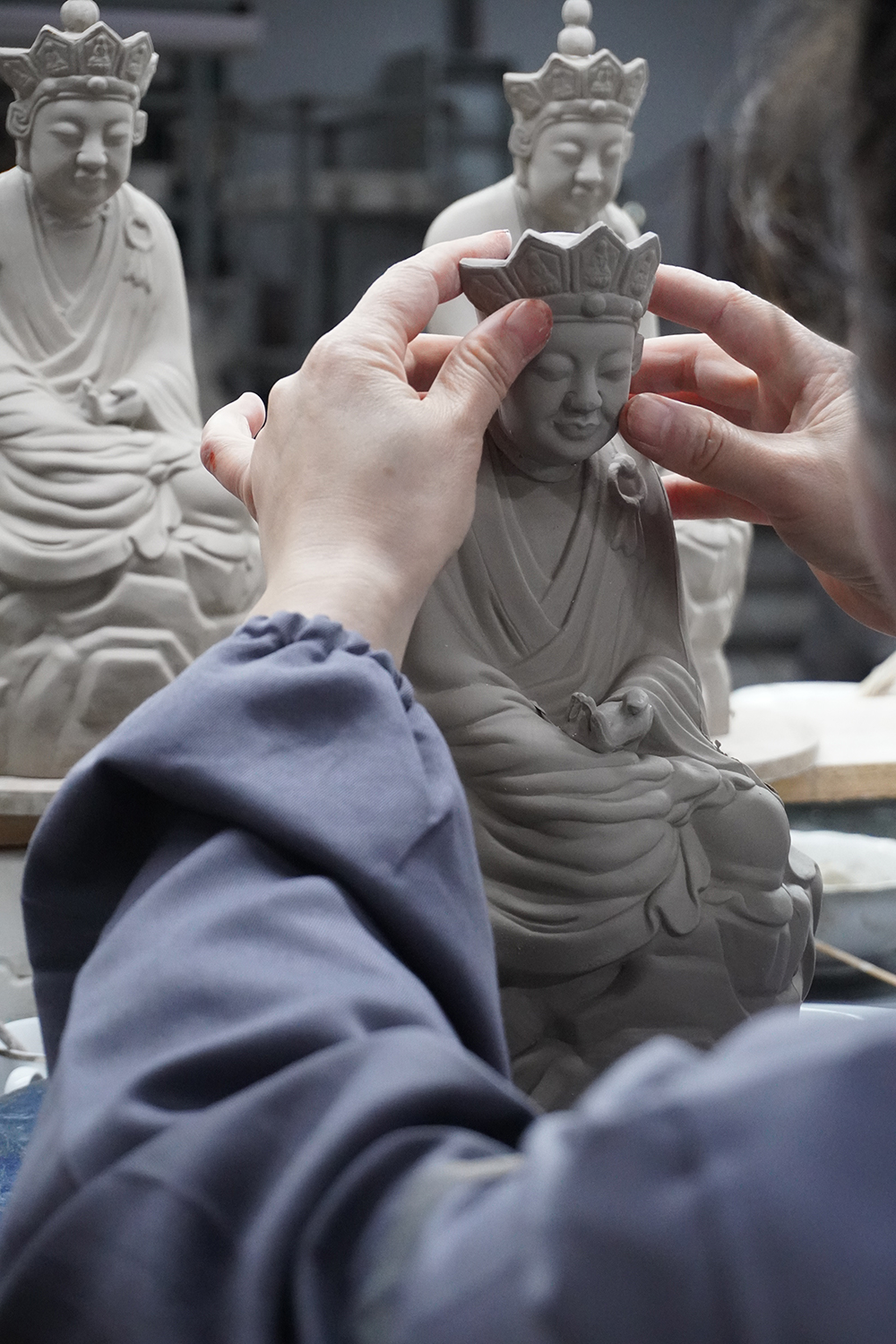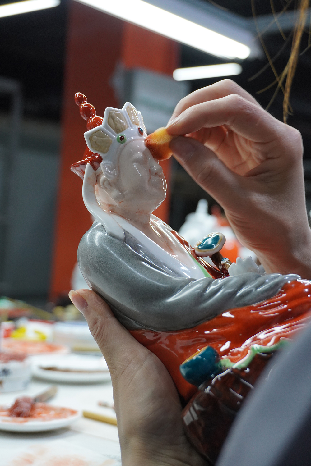 “無(wú)語(yǔ)菩薩”,原名叫“沉思羅漢”,是中國(guó)瓷器美術(shù)大師曾龍升的作品,《釉下加彩十八羅漢塑像》中的一件。收藏于景德鎮(zhèn)中國(guó)陶瓷博物館。這次也是很榮幸能參與我們景德鎮(zhèn)“網(wǎng)紅”無(wú)語(yǔ)佛的制作。目前陶溪川、御窯廠、名坊園等各大門店均有售賣。